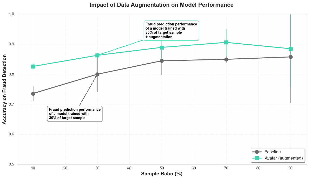 In other words, out of a thousand fraudulent transactions, the model trained with augmented data will detect 63 more.