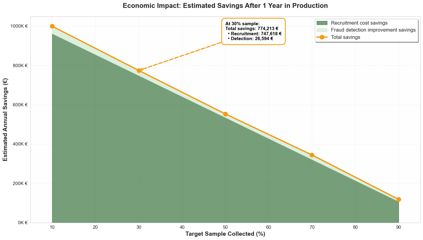 The numerical impact (at 30% of collection) : By stopping the collection at 30% and increasing the data, the estimated total savings after 1 year of production amounts to 774,213€.
